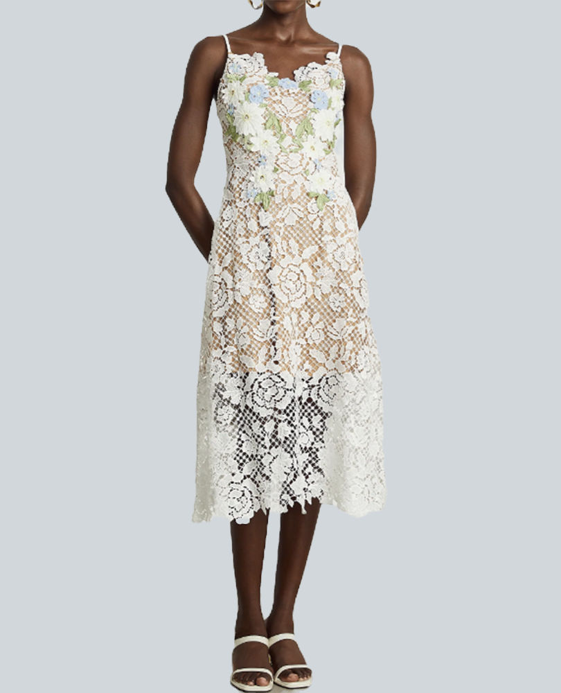 Sleeveless V-Neck A-Line Floral Print Floor-Length Dress with Embroidery Detail