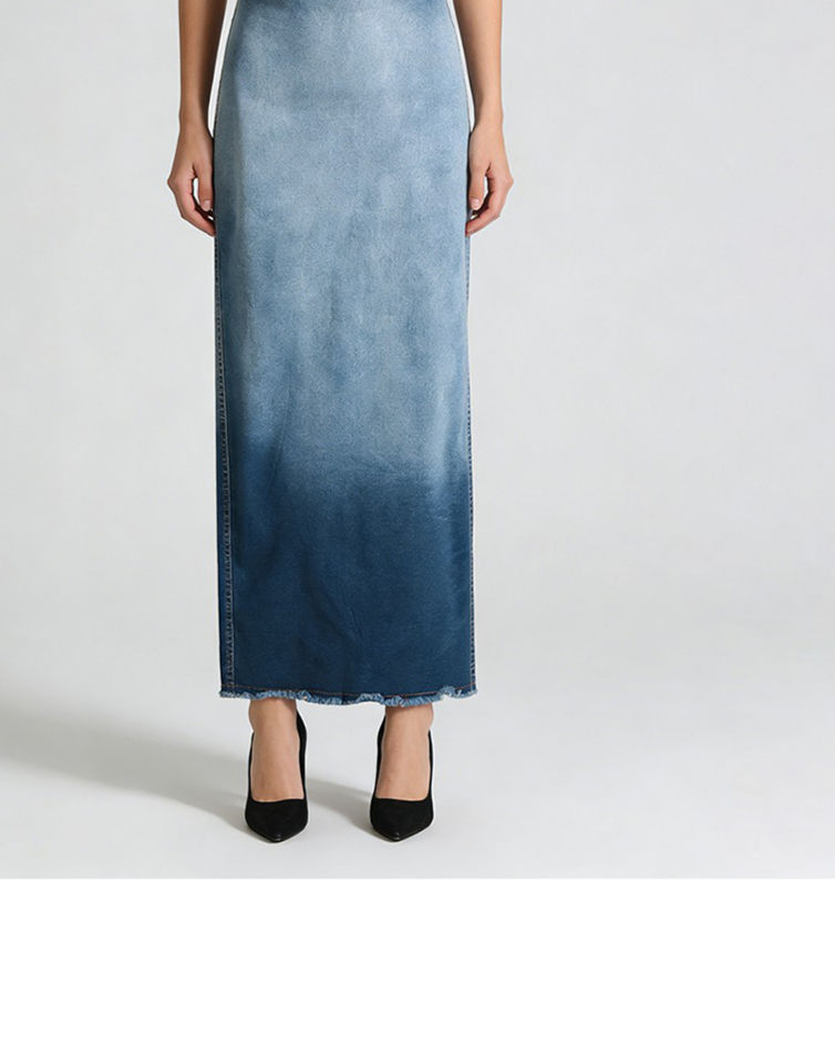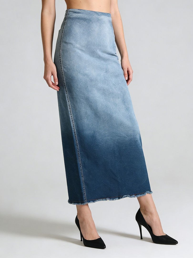 Gradient Cowboy Skirt, Polyester, Ankle-Length Straight Silhouette, High Waist