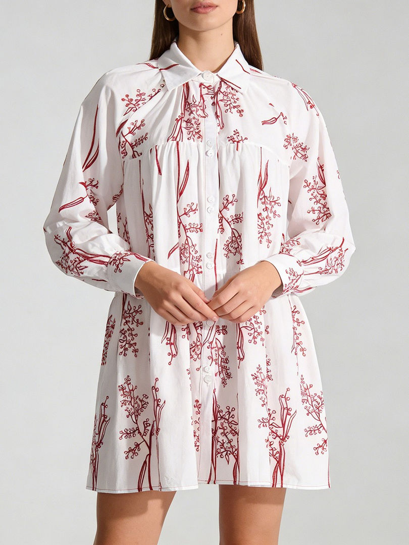 Tags: printed lapel dress, long sleeve A-line dress, ruched button dress, polyester mini dress, women's printed dress, spring autumn dress, single breasted dress, empire waist dress, turn down collar dress, tatting craft dress, woven fabric dress, loose fit dress, non stretch dress, midi A-line dress