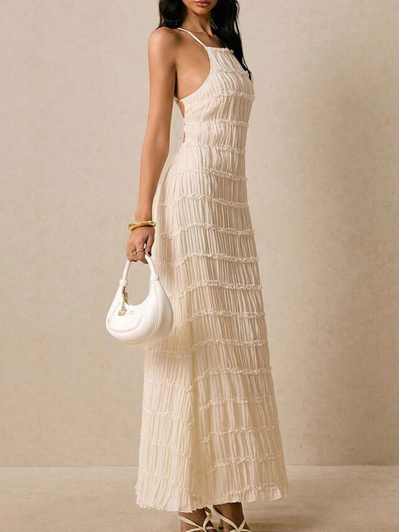 Tags:halter neck maxi dress, sleeveless floor length dress, slim fit summer dress, casual sheath dress women, striped spliced dress, women's spring summer dress, halter neck evening dress, cotton blend maxi dress, polyester blend summer dress, woven fabric long dress, natural waistline dress, zipper closure maxi dress, middle age women's dress, sheer spliced summer dress.