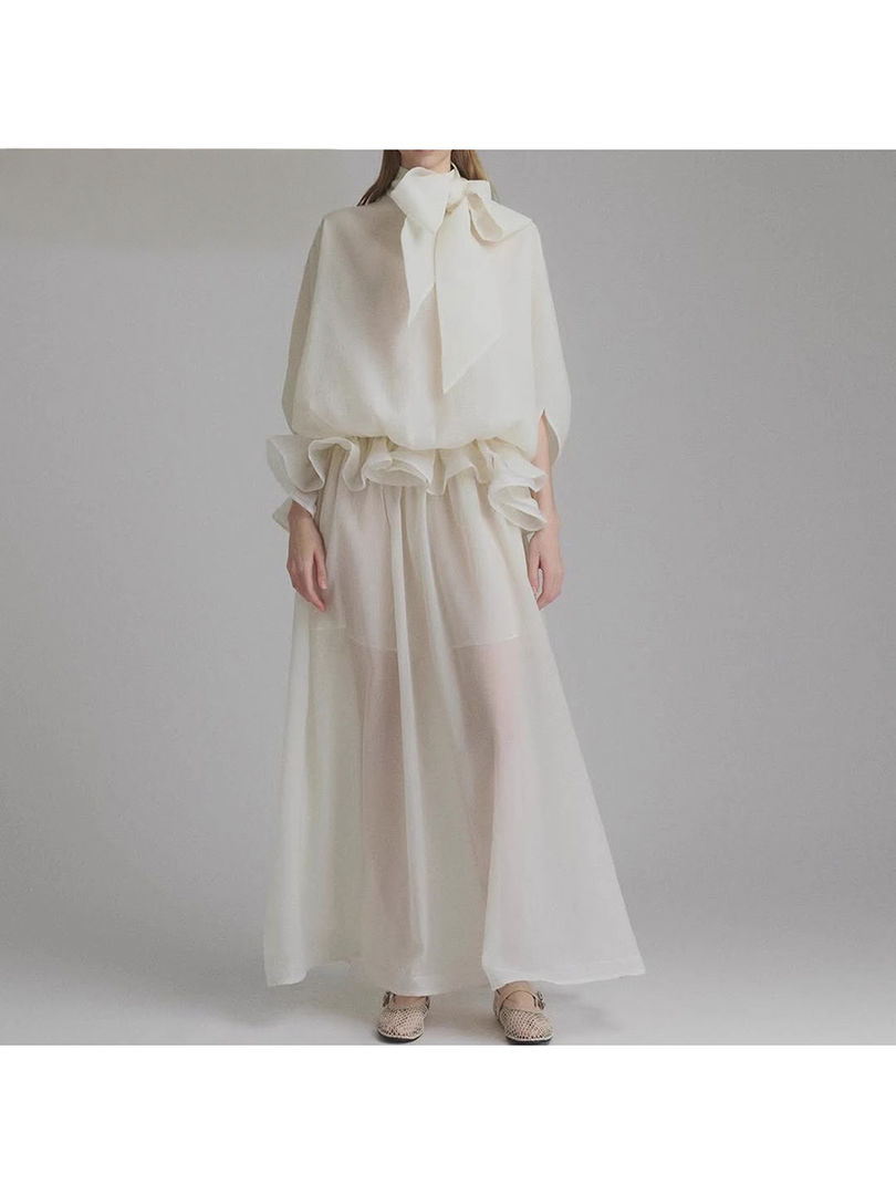 Tags: turtleneck half sleeve midi dress, loose fit A-line dress, solid color ankle length dress, casual elegant dress with bow, high neck spring summer dress, women's relaxed fit cotton dress, comfortable office casual dress, modest midi dress with sleeves, minimalist A-line dress for women, effortless day to night dress, spring brunch outfit dress, half sleeve mock neck dress, relaxed fit turtleneck dress