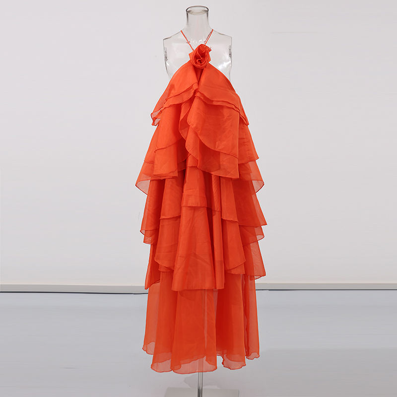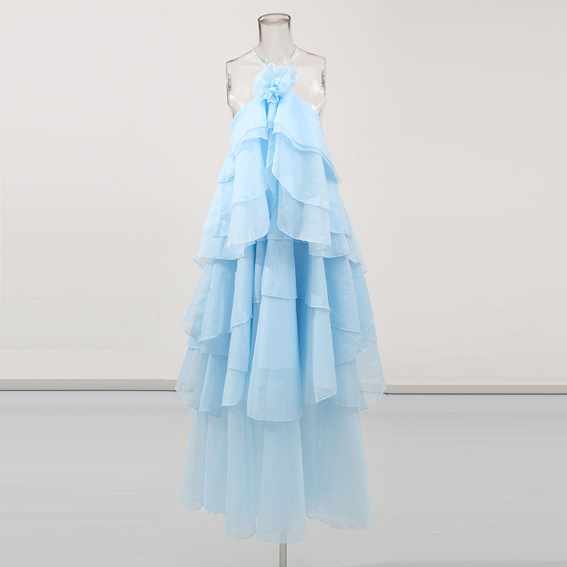 Tags:halter neck maxi dress, sleeveless floor length dress, solid color summer dress, loose fitting women's dress, A-line silhouette dress, casual long dress for women, spaghetti strap maxi dress, summer wedding guest dress, vacation maxi dress women, women's halter dress with ruffles, three dimensional decoration dress, cotton blend maxi dress, polyester summer dress, loose waist long dress.