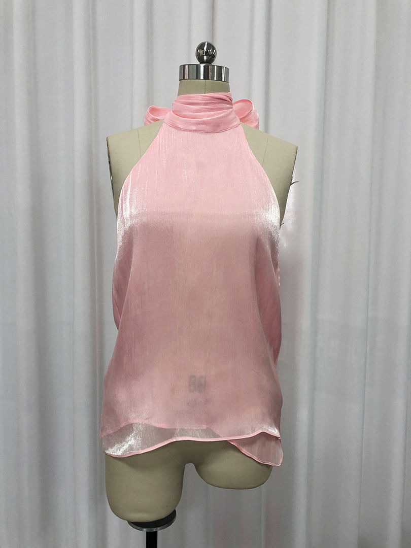 High Neck Blouses, Sleeveless Solid Bowknot Top, Polyester Woven Decoration