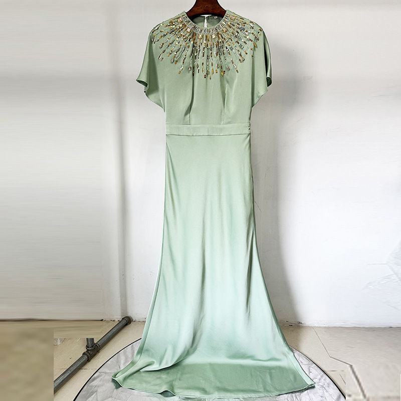 Tags:formal floor length dress with embroidery, elegant women's gown for special occasions, slim fit A-line dress with petal sleeves, summer formal dress with empire waist, luxurious embroidered dress for women, solid color floor length evening dress, women's formal dress with short sleeves, beaded spliced dress for women, round neck formal gown, middle age women's formal dress, spring summer formal dress, floor length cotton polyester dress, formal dress with zipper closure, women's dress with tatting craft.