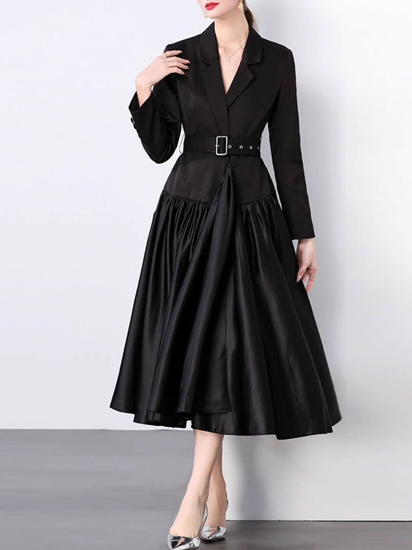 Tags:Ankle length dress with sleeves, slim fit midi dress for women, empire waist long dress, solid color office dress, notched lapel dress autumn, spaghetti strap long sleeve dress, A-line silhouette dress, woven fabric dress for women, middle age fashion dress, fall and winter dress with zipper, spliced folds dress design, slimming dress for women, professional women's dress, elegant long dress for work.