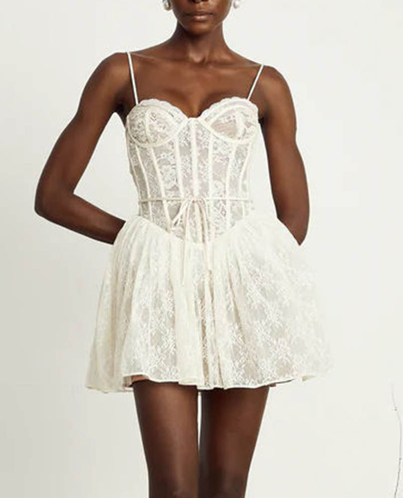 Solid Mini Dress Sleeveless Square Neck A-Line Ruffle Spliced Slim Fit Cotton Bl