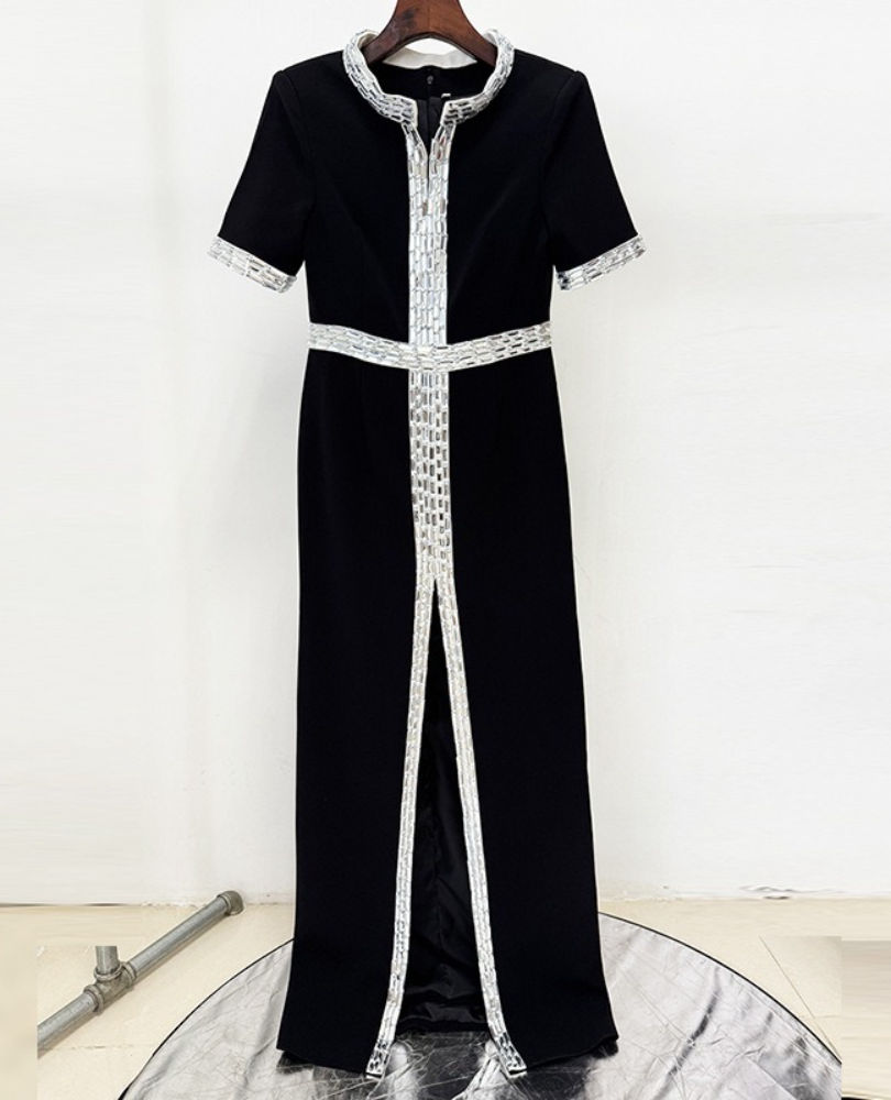 Tags:elegant v neck midi dress for women, office lady sheath dress, solid color embroidered dress, floor length formal dress, spring summer work dress, slim fit midi dress with sleeves, women's professional attire, v neck dress for business meeting, sophisticated evening dress for women, cotton blend office dress, polyester blend sheath dress, short sleeve formal dress, beaded spliced dress for women, elegant midi dress for middle age women.