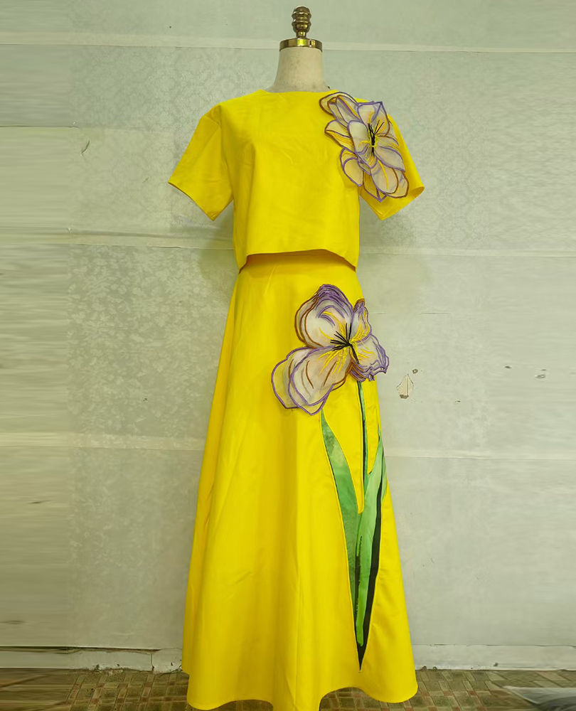 Tags: women's solid two piece set A-line dress, O-neck short sleeve cotton polyester blend outfit, office lady spring summer fashion, casual midi dress two piece set women, women's woven tatting dress set, ankle length A-line dress short sleeve, three dimensional decoration dress set, polyester cotton blend women's clothing, solid pattern office dress set, middle age women's fashion set, spring 2025 women's collection, short clothing length dress set, women's woven fabric outfit, zipper closure dress set