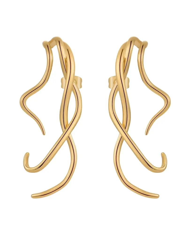 Gold Sleek Uncoiled Snake Studs Eco-Friendly Brass Curving Statement Edgy
