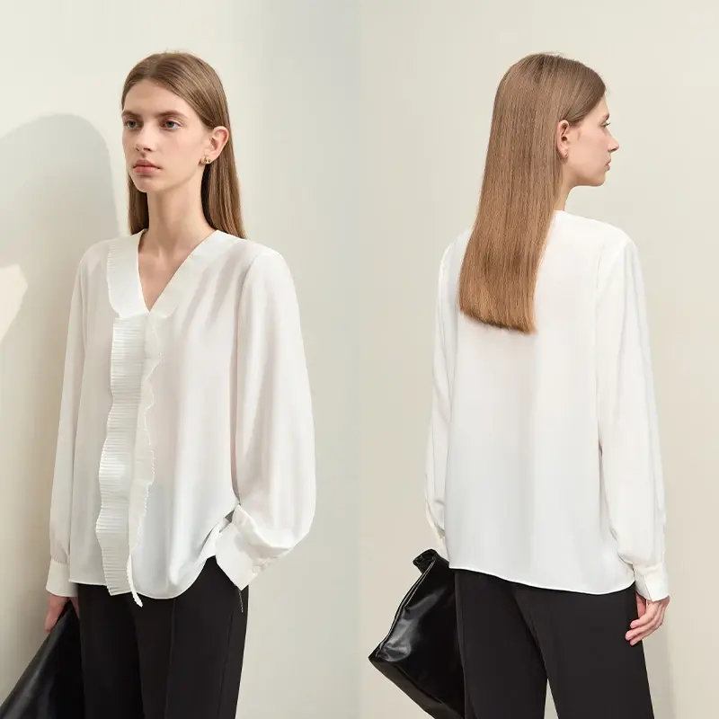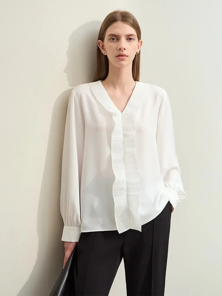 V-Neck Chiffon Blouse Spring New Pleated Casual Loose Tops