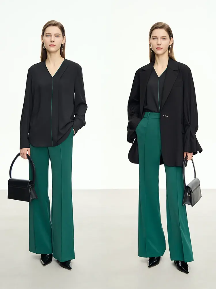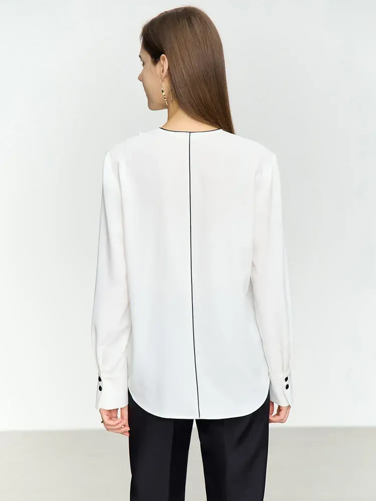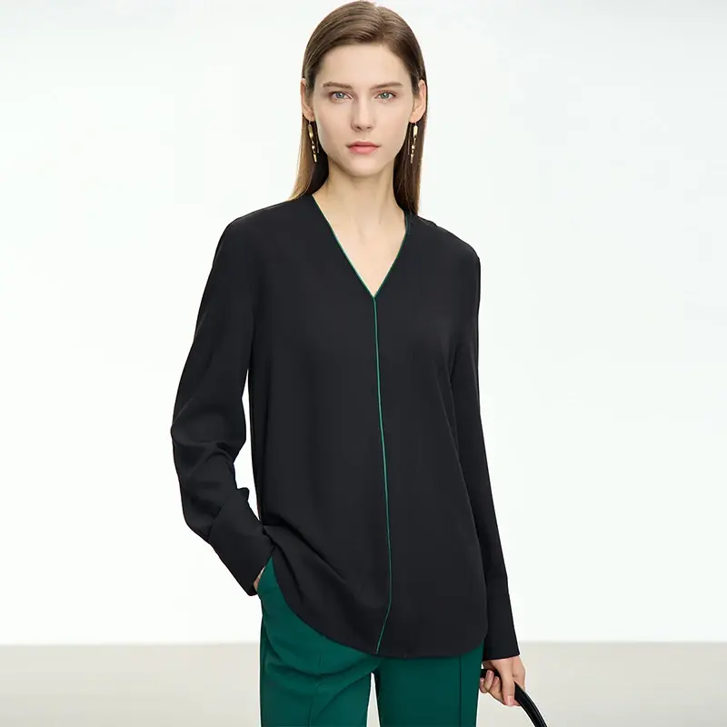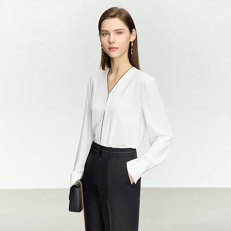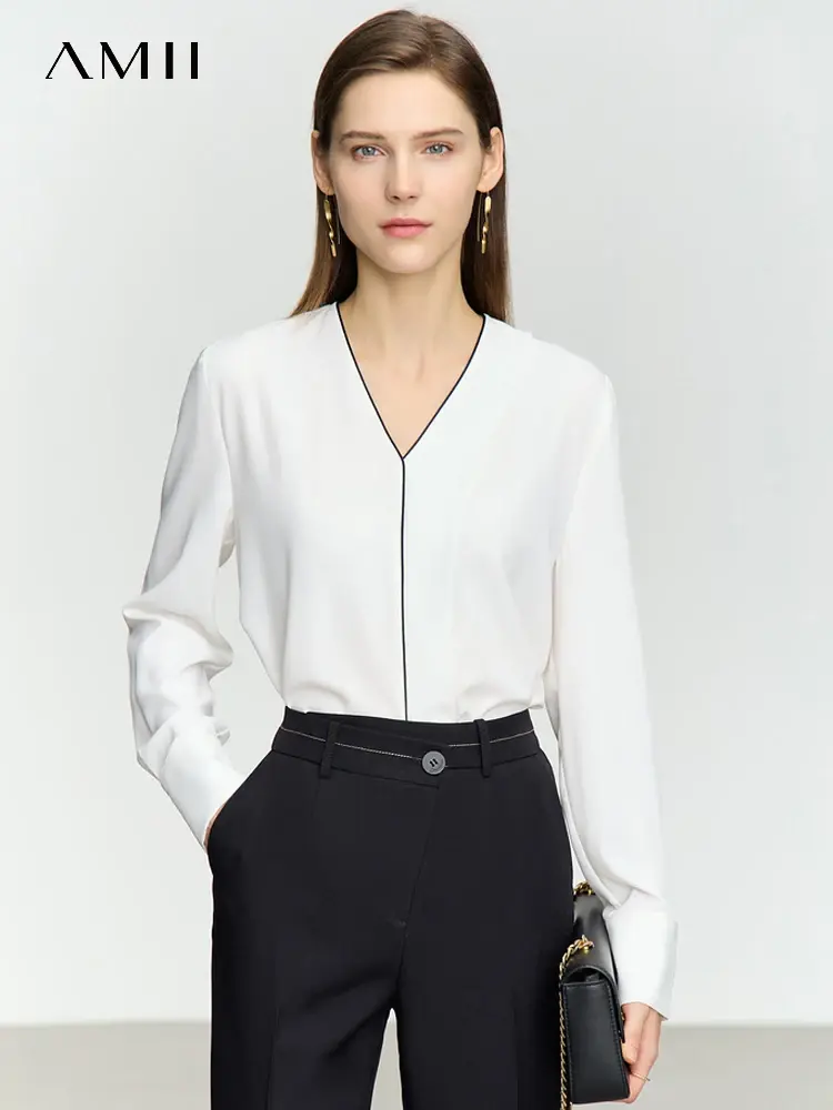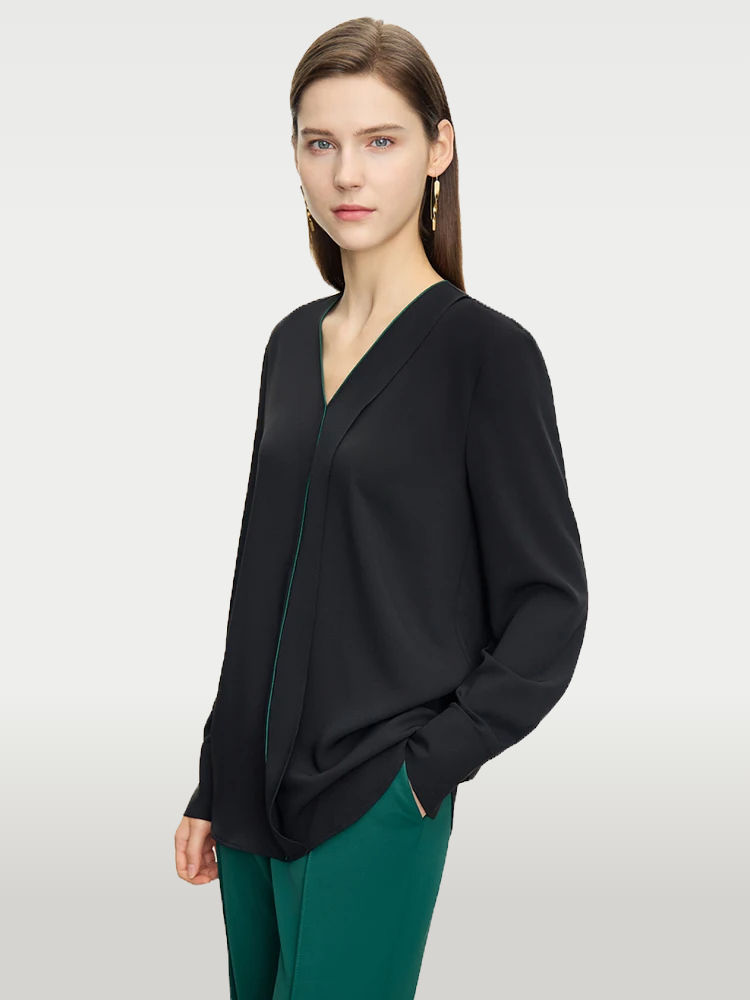 V-Neck Chiffon Long Sleeve Shirt - Women's Autumn Minimalist Trendy Blouse