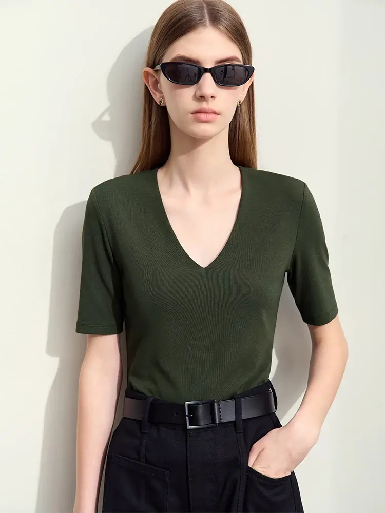 V-Neck Modal Cotton T-Shirt Summer Casual Half Sleeve Top