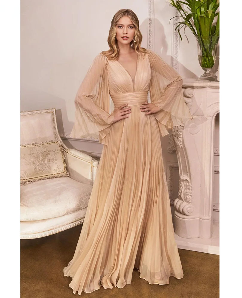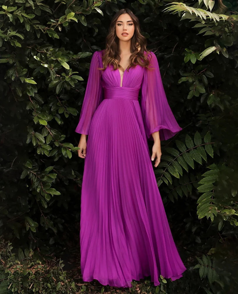 Tags:V-neck chiffon prom dress, floor length prom dress with sleeves, A-line prom dress long, three quarter sleeve formal dress, draped prom dress, ruched prom dress, pleated prom dress, classic prom dress style, prom dresses for all ages, formal dresses with built-in bra, sweep train prom dress, polyester prom dress, affordable elegant prom dresses, prom dresses with vintage fashion element.