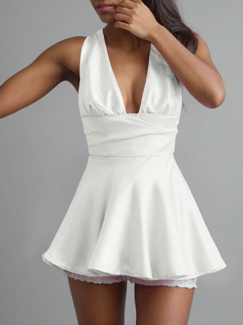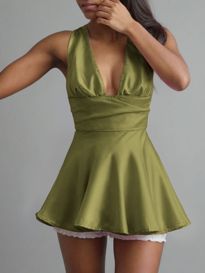 V Neck Silk Satin Mini Dress For Women Summer Solid Color Casual Short Dress Sex