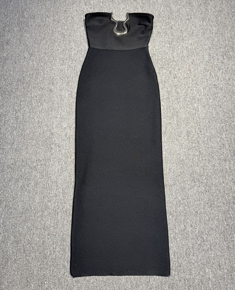 Tags:black strapless bodycon dress, sleeveless midi dress for women, irregular neckline party dress, metal detail sheath dress, slim fit knit dress, sexy club dress, winter party outfit ideas, all season bodycon dress, middle age women's dress, high stretch cocktail dress, strapless evening dress, black midi dress with zipper, fitted black dress for women, bodycon dress for special occasion.