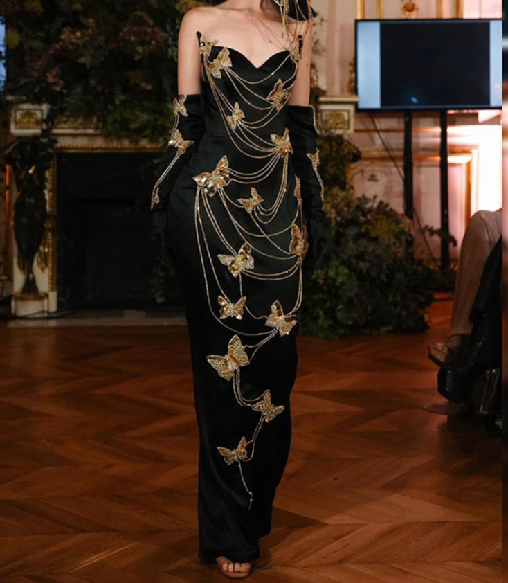 Tags:Strapless velvet maxi dress, long sleeve formal dress women, floor length party dress, slim fit velvet gown, black velvet dress with gloves, luxury evening dress, winter formal dress, celebrity inspired dress, empire waist velvet dress, butterfly detail dress, elegant party outfit, women's special occasion dress, long sleeve black gown, strapless formal gown.
