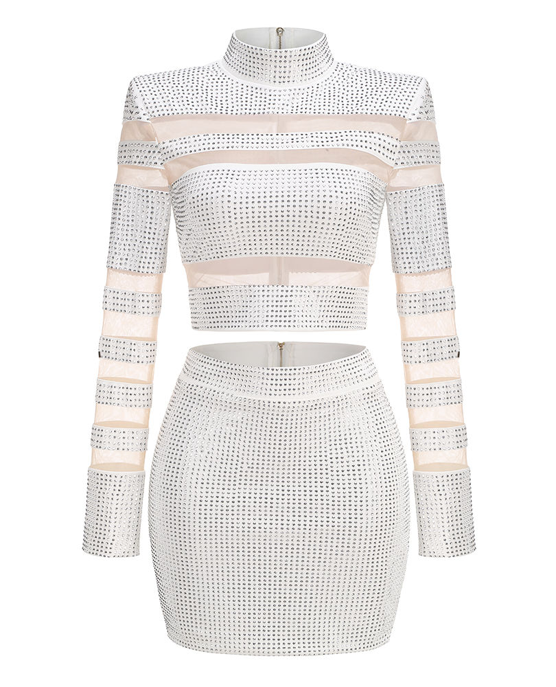 Tags:sequin two piece set, embellished knit set, short knit dress set, stand collar two piece outfit, slim fit sequin dress set, knit mini dress with jacket, mesh patchwork two piece set, winter knit two piece set, long sleeve sequin dress set, party outfit two piece set, casual sequin knit set, diamond embellished two piece set, white and black two piece set, short sequin dress with jacket.
