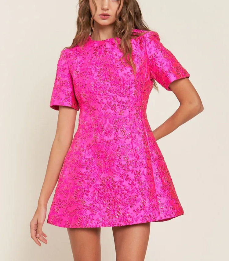 Tags:hot pink jacquard mini dress, short sleeve A-line summer dress, fairycore style dress women, elegant short pink dress, summer party dress for women, empire waist mini dress, short hot pink cocktail dress, cute short sleeve summer dress, women's short fairycore dress, jacquard knit mini dress, short pink dress for date night, flattering A-line mini dress, short sleeve summer gown, hot pink dress with zipper, short pink dress for vacation.