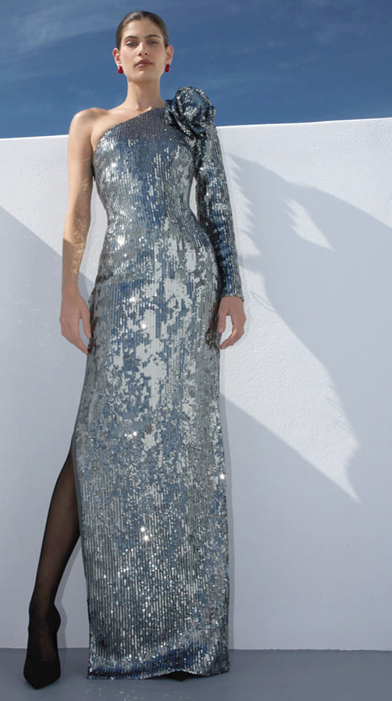 Tags:silver sequin long dress, women's slanted collar dress, one sleeve midi dress, knit bodycon dress, autumn winter party dress, sexy club dress for women, empire waist evening gown, slim fit sequin dress, three dimensional flower dress, special occasion sequin dress, women's fashion party dresses, long sleeve sequin maxi dress, structured flower evening dress, diagonal collar party dress.