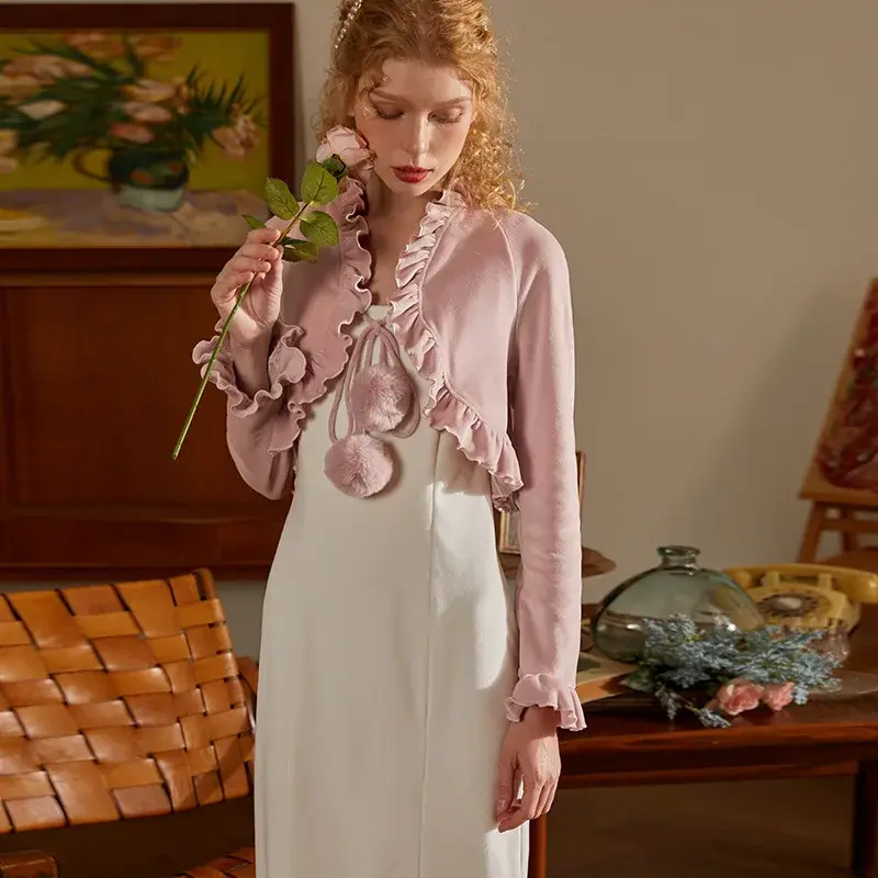 Velvet Nightgown Set with Cape - Romantic Double-Faced Sleepwear