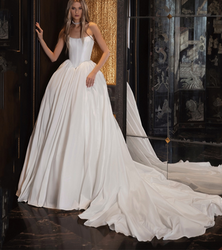 Custom-made A-Line Wedding Dress, Strapless Bridal Gown, Ivory Lustrous Satin