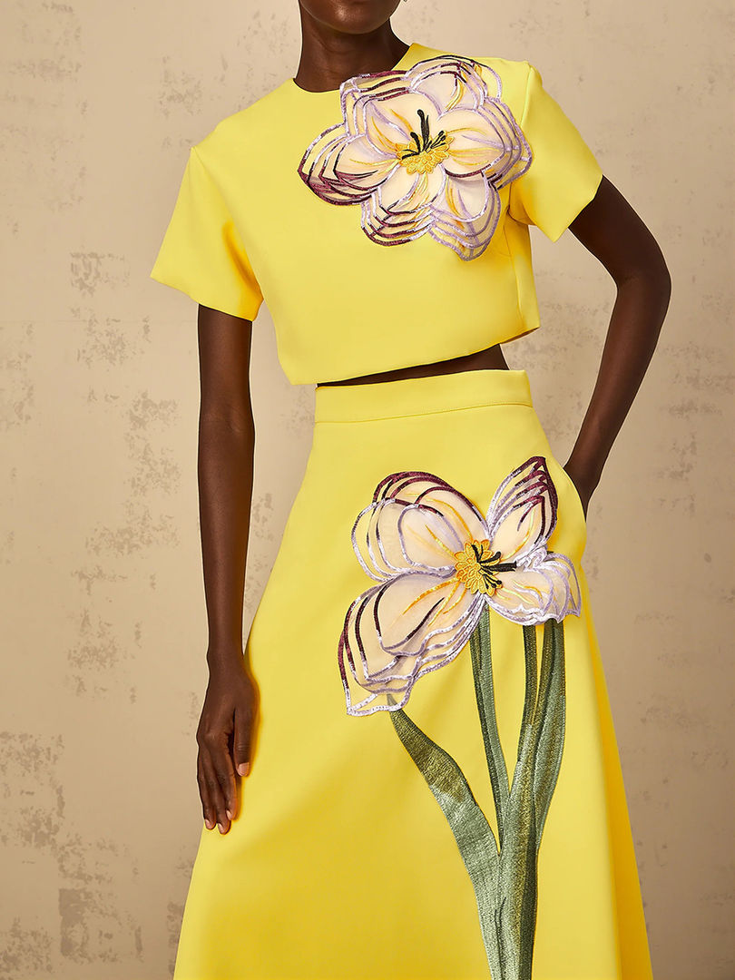 Tags: women's two piece skirt and top set, matching crop top and high waist skirt, solid color party outfit for women, elegant two piece set for wedding guest, A-line skirt and top co-ord set, short sleeve crop top with ankle length skirt, formal matching set for special occasions, applique detail two piece outfit, O-neck top and skirt set, spring event outfit for women, high waist skirt and top set for party, slim fit two piece skirt set, women's coordinated party wear