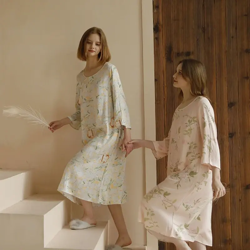 Made from soft and luxurious viscose satin, this nightgown offers a smooth, gentle feel against the skin. The fabric drapes beautifully and flatters your figure, ensuring a touch of elegance for bedtime.