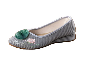 Vintage Embroidered Pointed Toe Slip-On Pumps - Ethnic Style Shoes