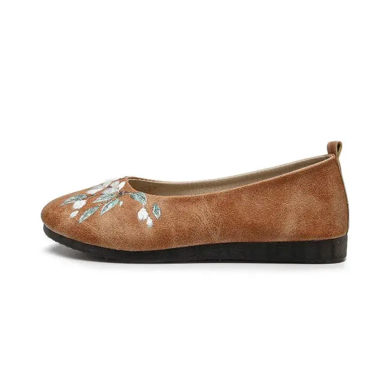 Vintage Embroidered Slip-On Loafers - Round Toe Casual Shoes