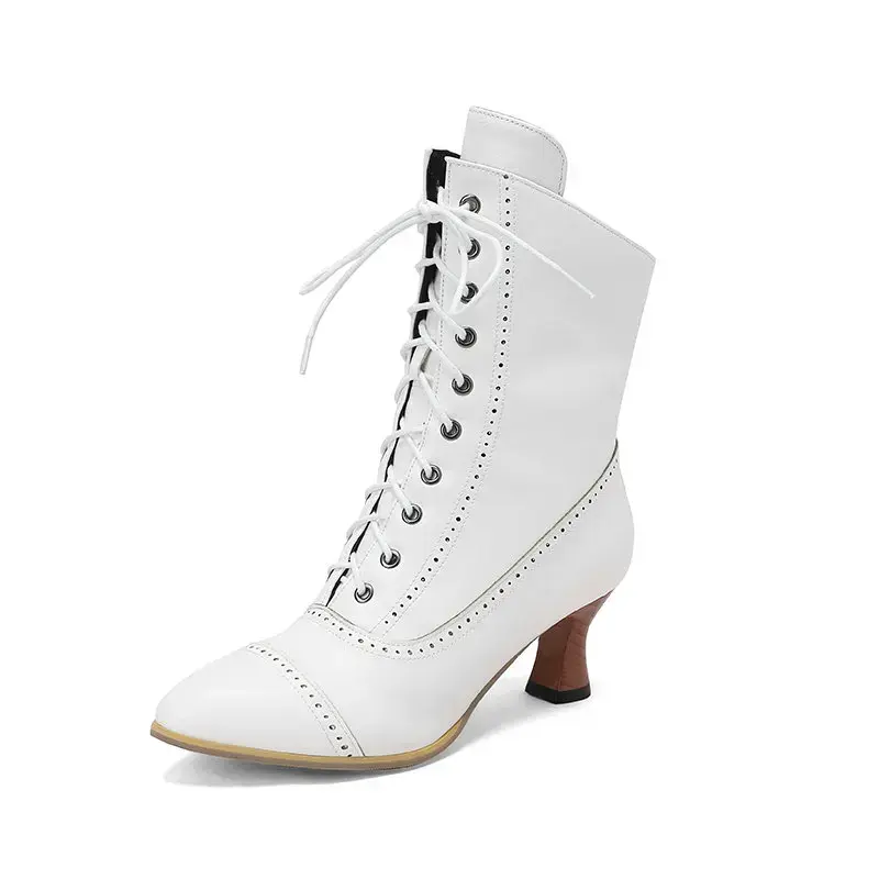 These ankle boots effortlessly blend warmth and style, making them a versatile addition to your winter wardrobe. The lace-up design ensures a secure and comfortable fit, while the pointed toe adds a touch of sophistication.