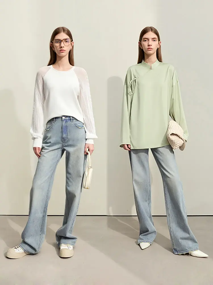 Washed Straight Denim Jeans - Spring Minimalist Casual Pants