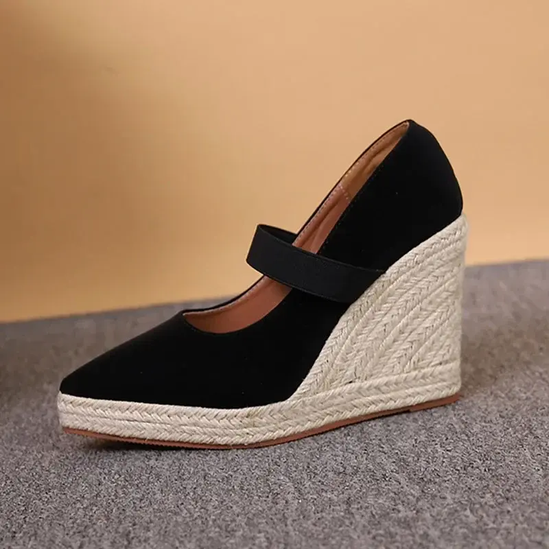 Wedge Heel Thick Sole High Heels Pointed Toe Single Shoes Shallow Mouth Straw