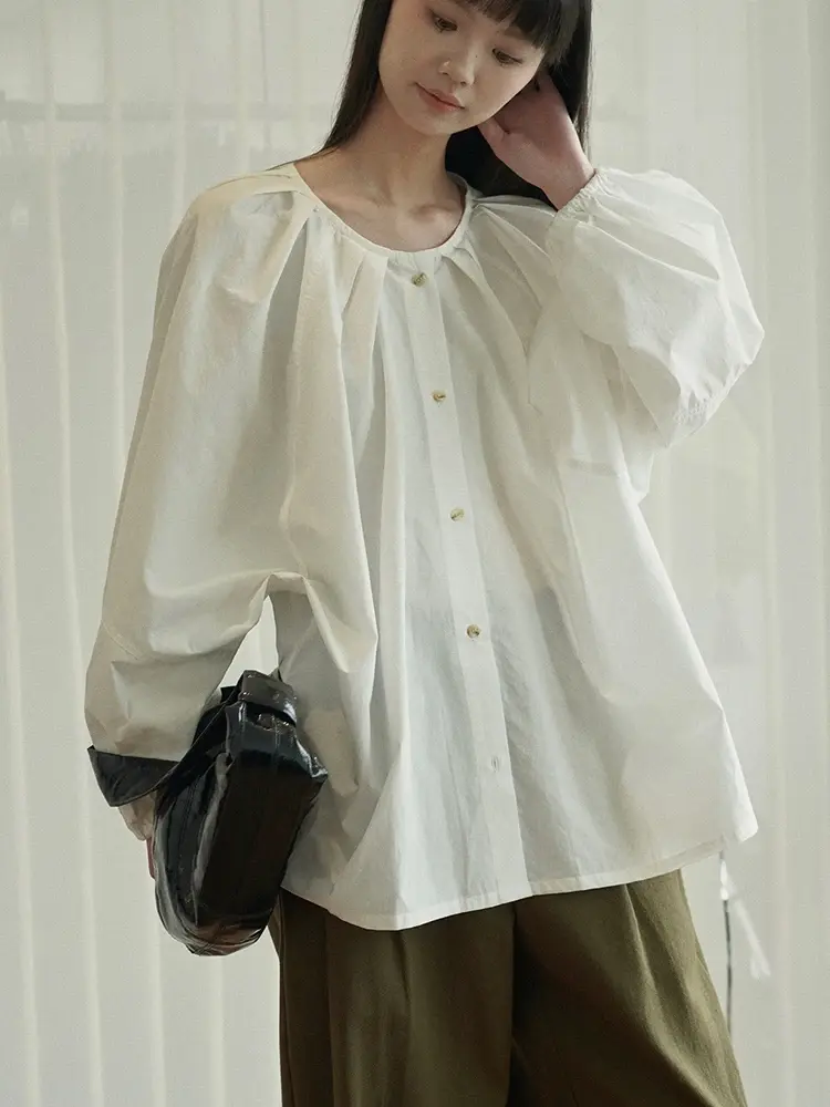 This jersey top offers timeless style with a touch of warmth. Made from a comfortable cotton-polyester blend, it features a crisp white base and a versatile brown color that complements various looks. The relaxed loose fit flatters most body types and drapes beautifully. Breathable and perfect for all seasons, this top pairs effortlessly with jeans, leggings, or a skirt for a casual look you'll love.