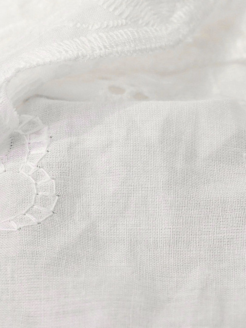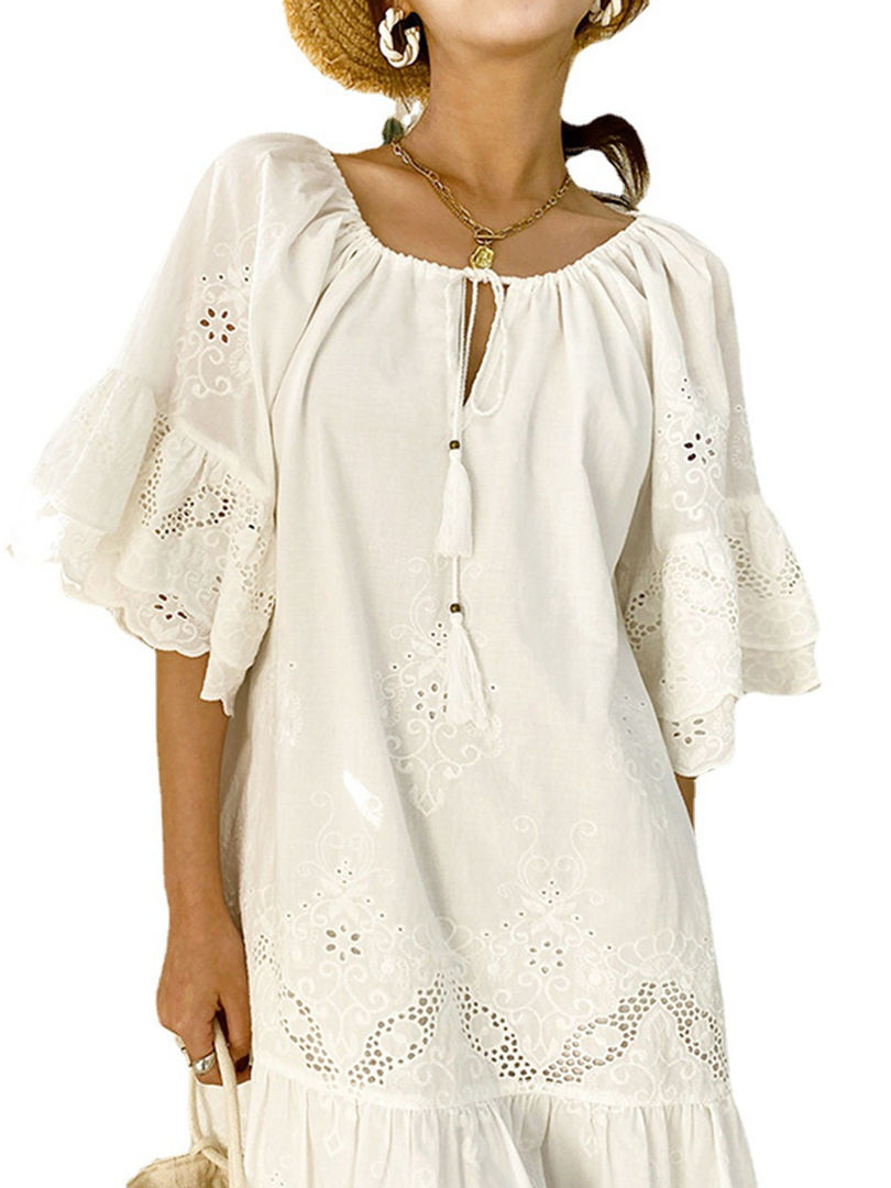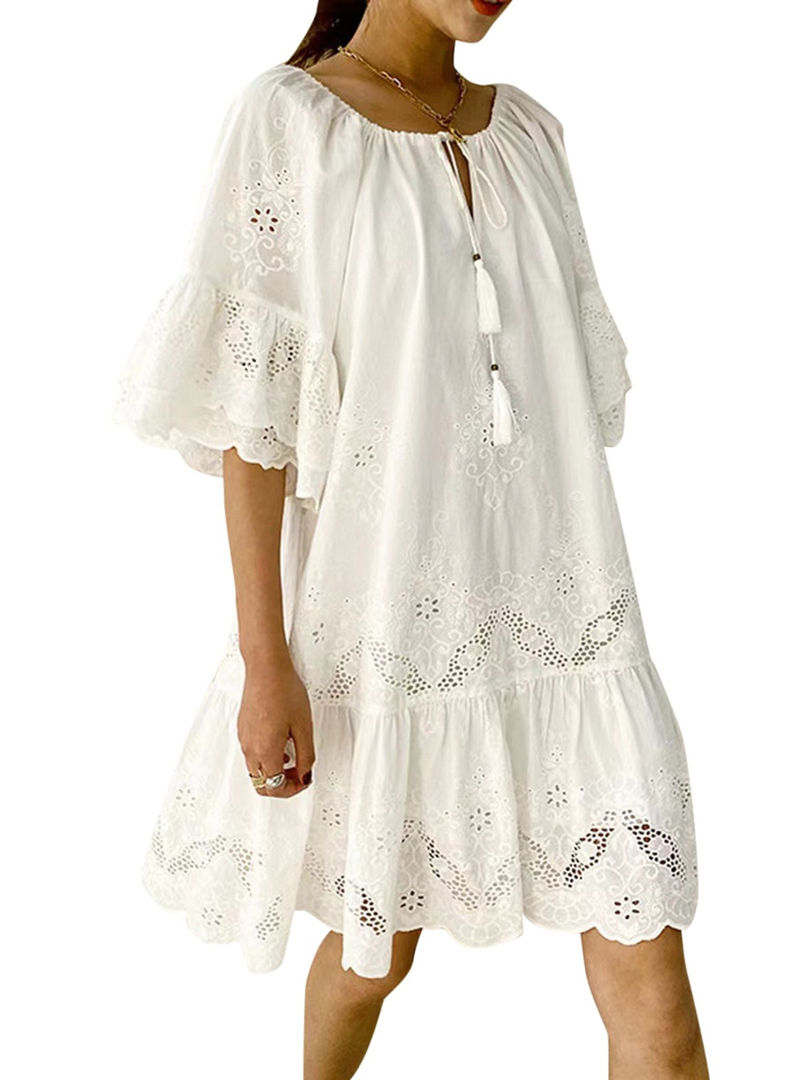 White Short Loose V-Neck Sleeveless Crochet Lace Pullover Beach Vacation Dress