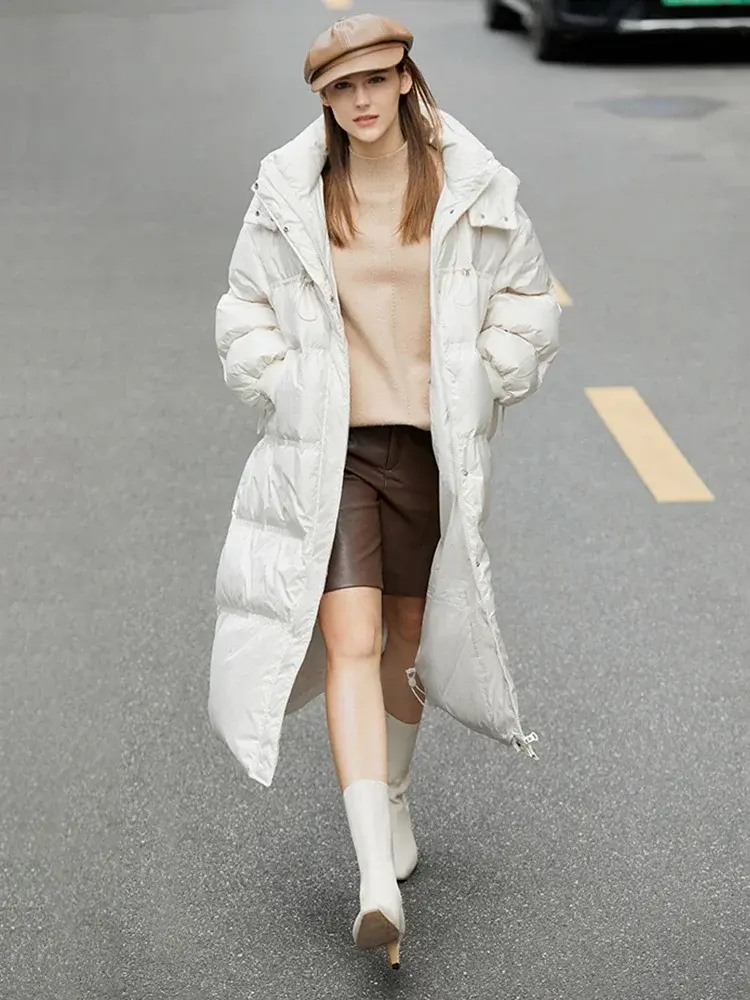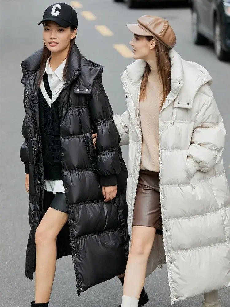Embrace warmth and style this winter with this luxurious long down jacket. Crafted with premium materials and impeccable attention to detail, this coat is designed to keep you comfortable and looking effortlessly chic. Its timeless design and versatile silhouette make it a perfect addition to any winter wardrobe. This jacket is composed of a high-quality polyester outer shell and is filled with 90% down for superior insulation. Perfect for everyday wear, work, casual outings, or special events.