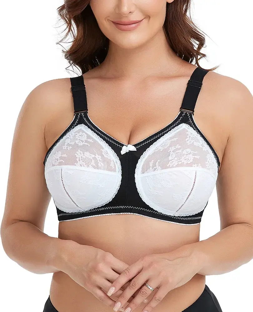 Wireless Lace Bra Full Coverage Thin Non-Padded Plus Size Breathable Comfort