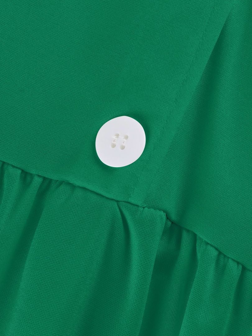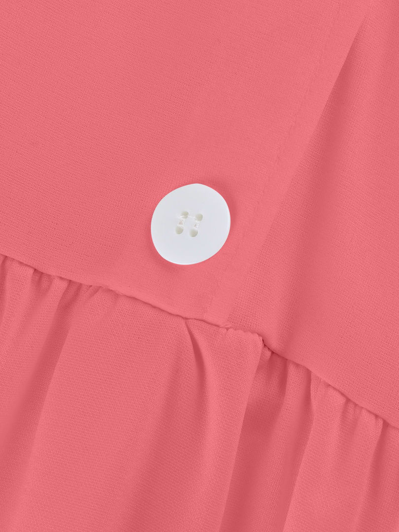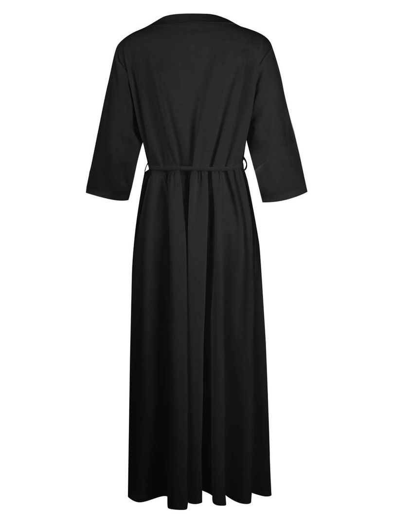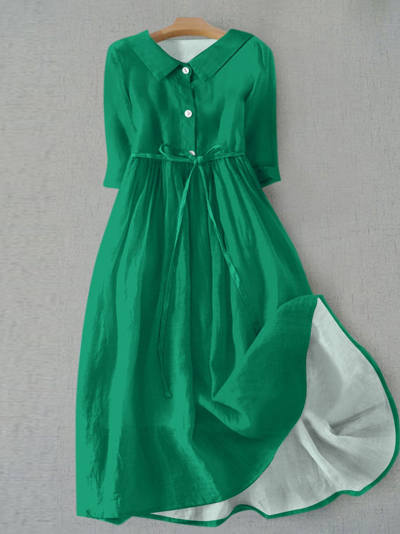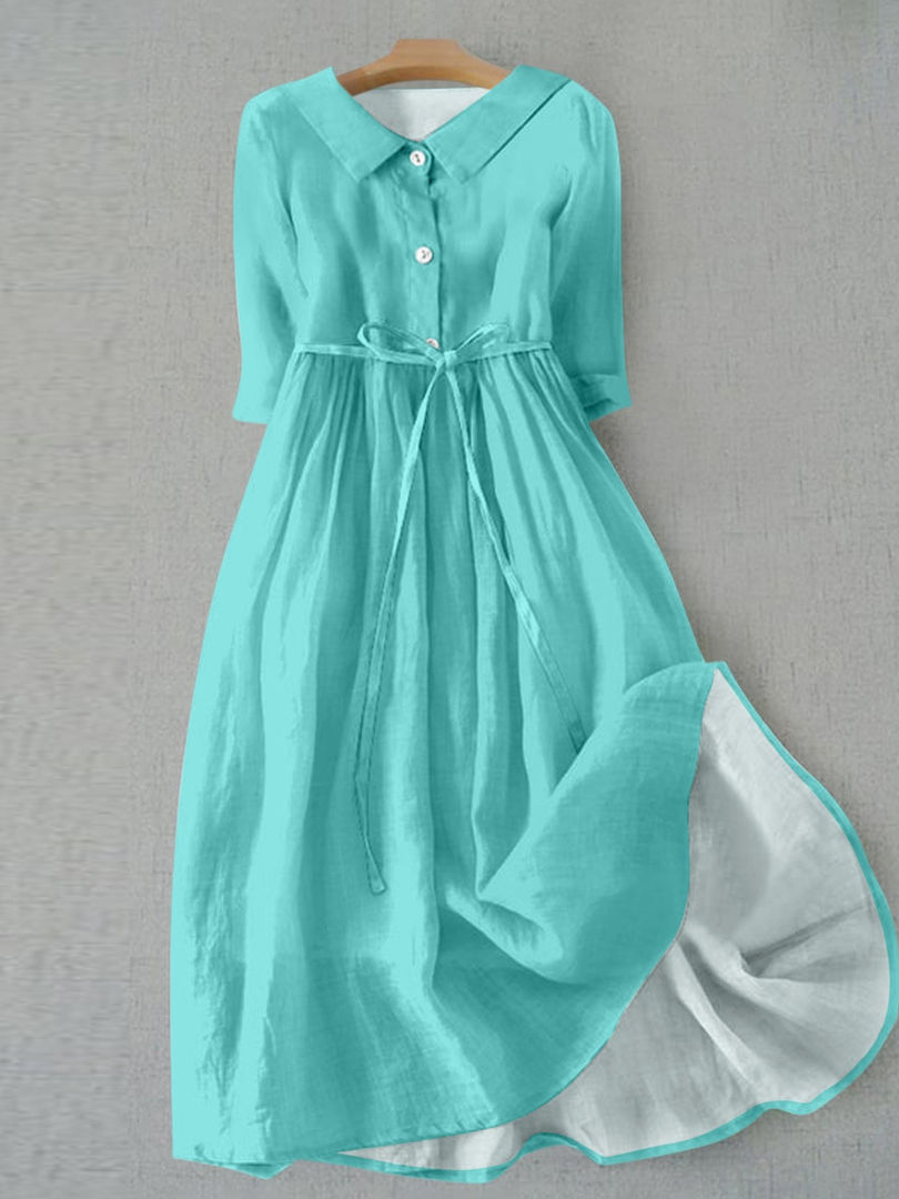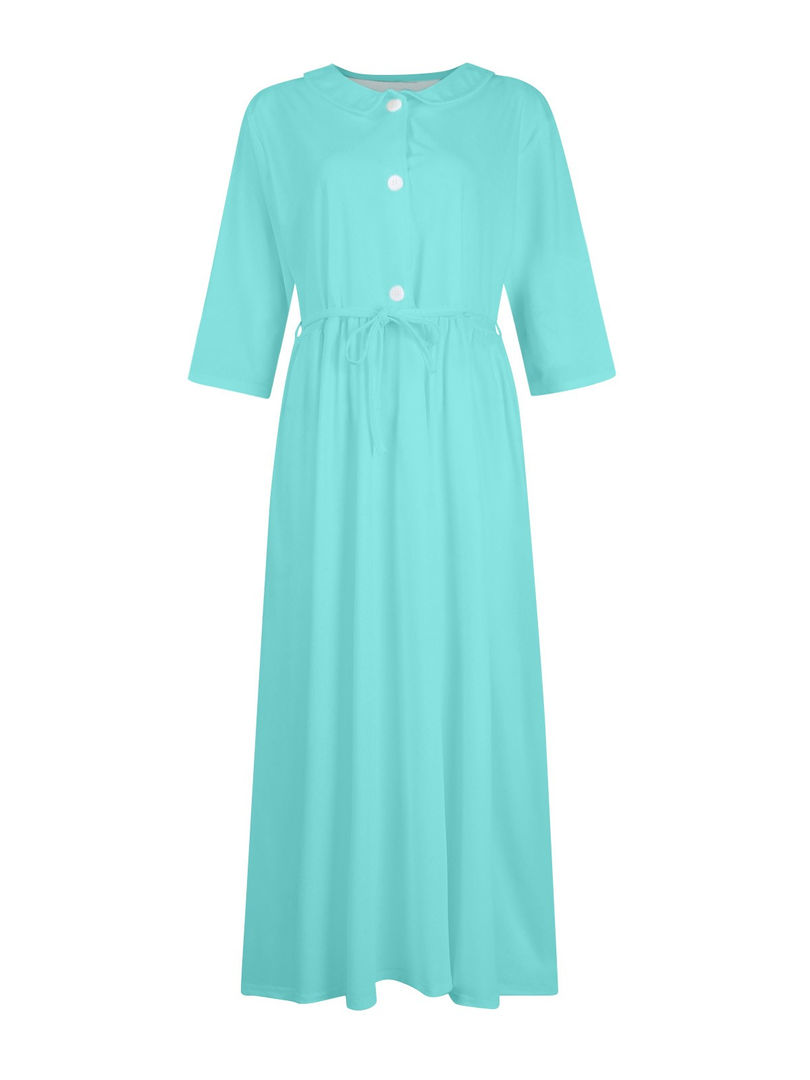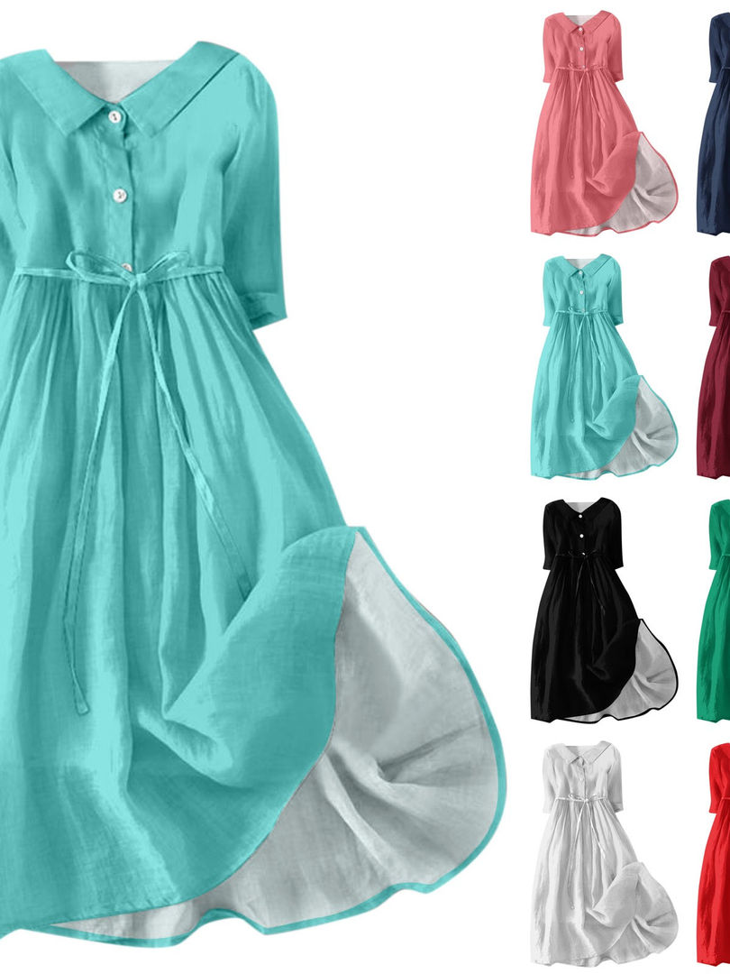 Solid Beach Shirt Dress A-Line Turn-Down Collar Button Midi Three Quarter Sleeve