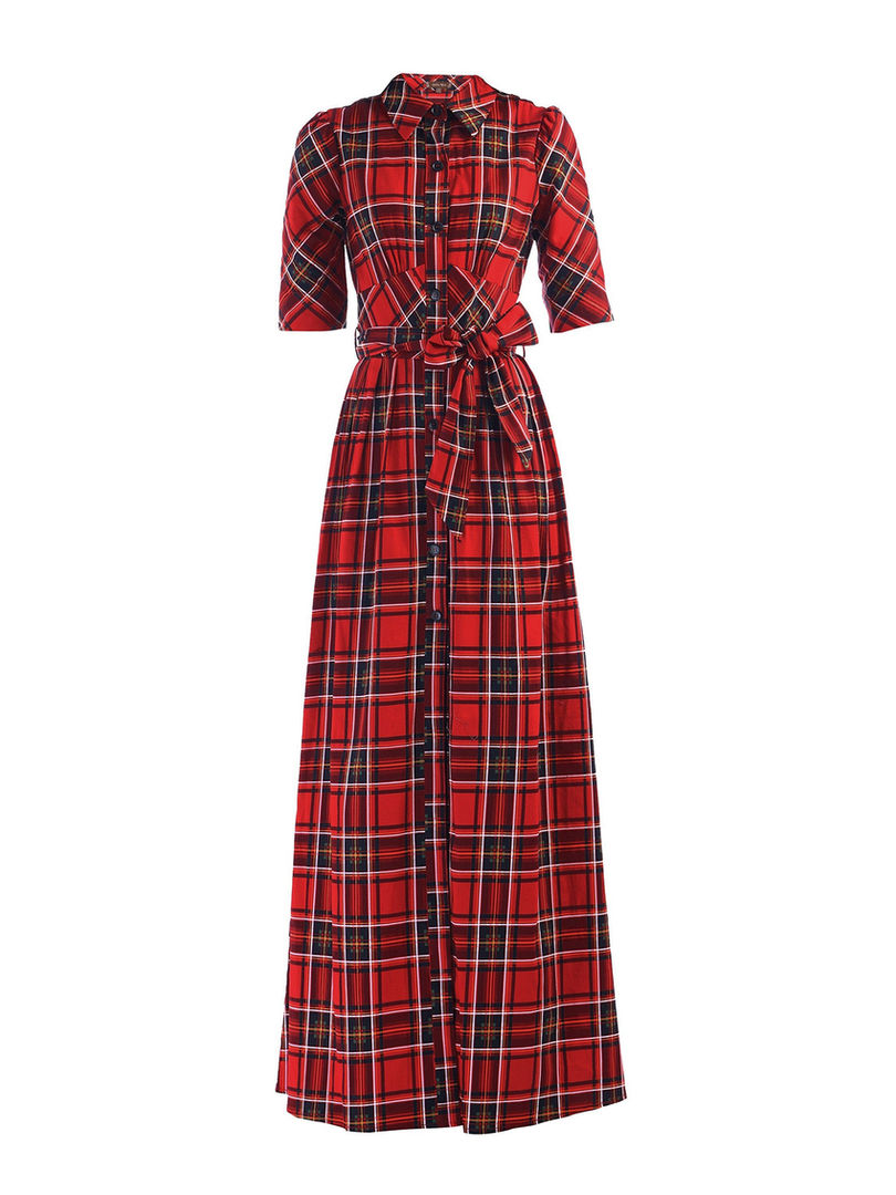This is an ankle-length dress crafted from velvet, designed with a turn-down collar and half sleeves. It features a single-breasted closure and is accented with diamond decoration, offering a regular fit and a natural waistline.