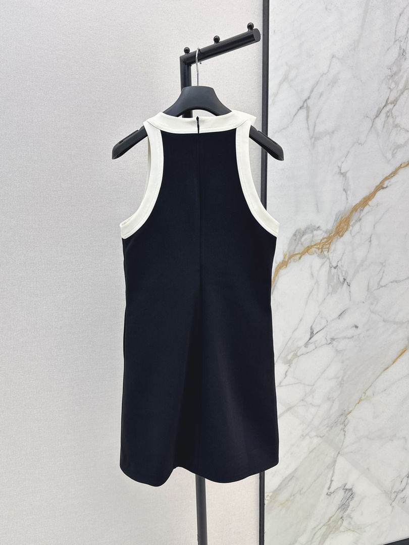 Sleeveless Knee-Length Knit Dress O-Neck Slim Fit Cotton Blend Stretch Trim