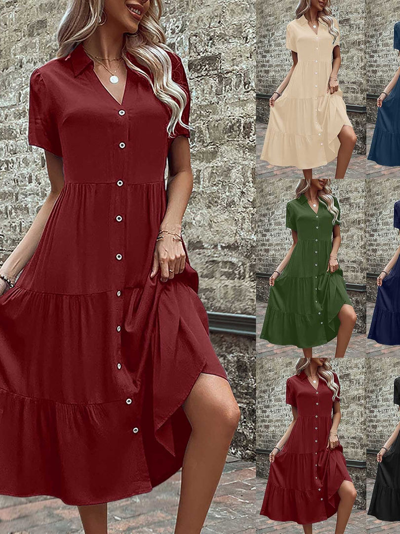 Solid Color Sleeveless O-Neck A-Line Polyester Knee-Length Casual Tiered Dress
