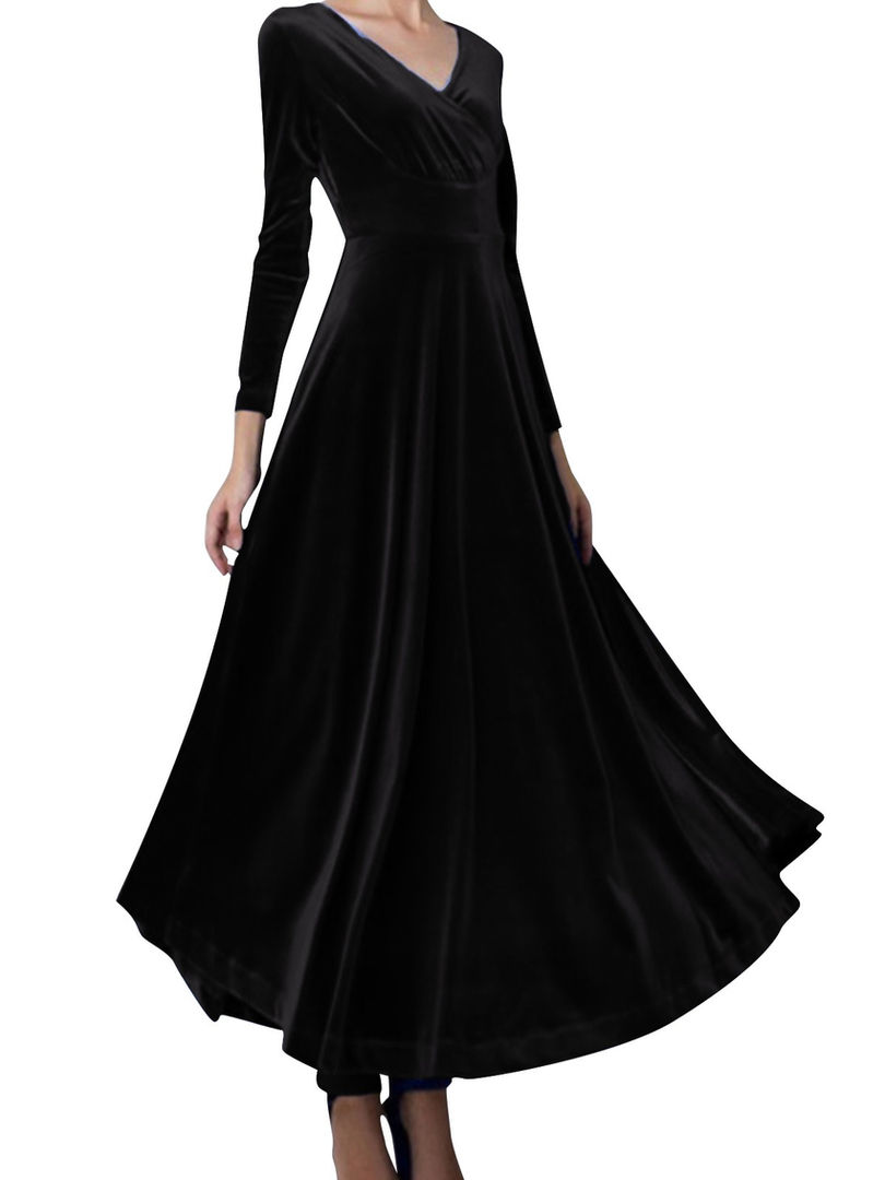 Sleeveless O-Neck Gold Velvet A-Line Midi Dress Solid Polyester Casual Wear