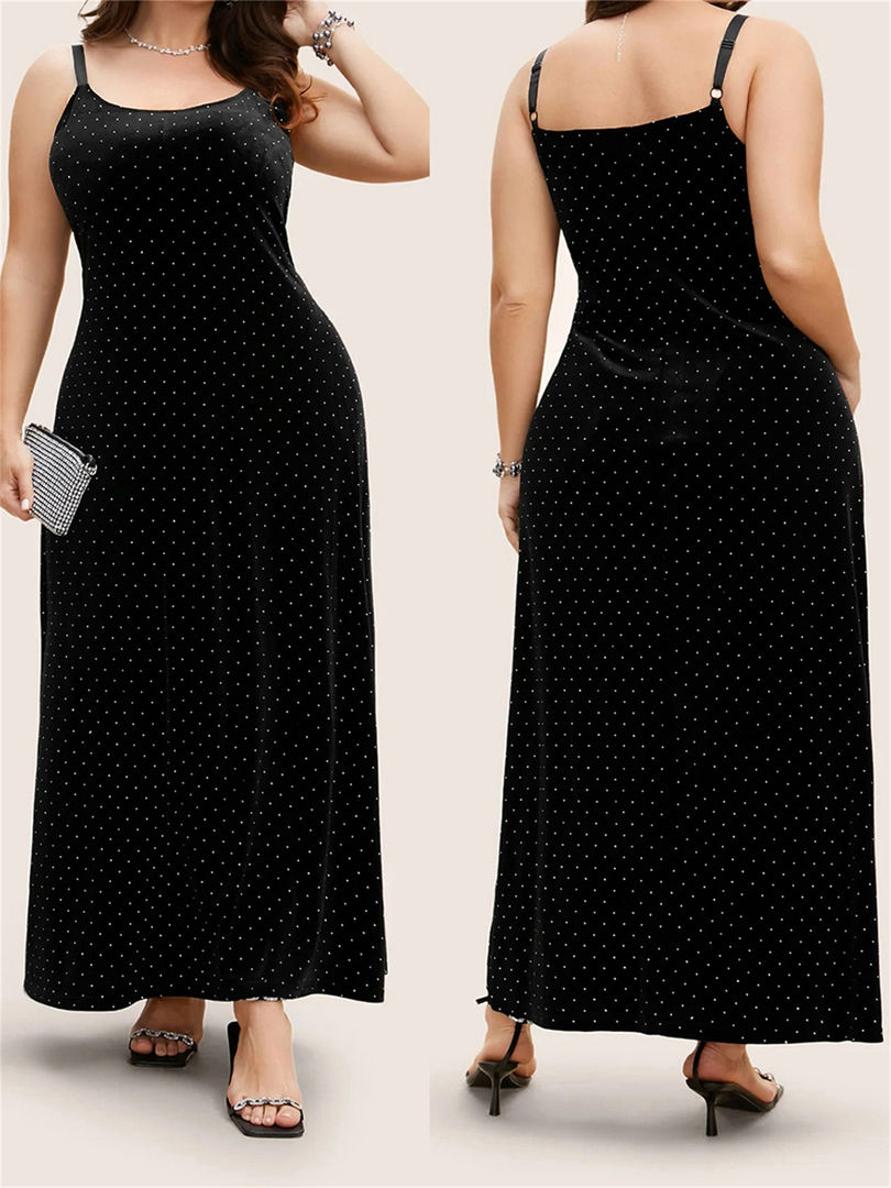 Plus Size Velvet Dress Mid-Calf O-Neck Full Regular Sleeve Solid Straight Diamon