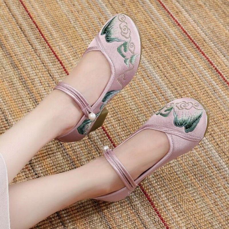 Tags: women's embroidered floral Mary Jane shoes, chunky heel pumps with ankle strap, round toe block heel Mary Janes, ethnic style embroidered shoes for women, comfortable medium heel dress shoes, cotton Mary Jane pumps with button, vintage style floral embroidered heels, boho chic chunky heel shoes, spring autumn dress pumps for women, Mary Jane dance shoes with block heel, women's round toe embroidered pumps, floral pattern hoof heel shoes, button closure Mary Jane heels, bohemian embroidered block heel pumps