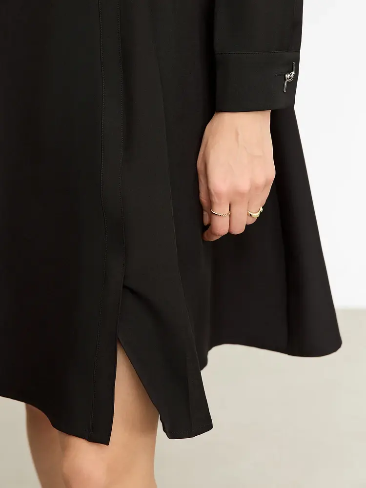 Elevate your wardrobe with this sophisticated and sleek knee-length dress. The flattering A-line silhouette and V-neckline create a timeless and elegant look, perfect for various occasions. Crafted with a blend of polyester and spandex, this dress offers both comfort and a touch of stretch, ensuring a comfortable fit throughout the day.
