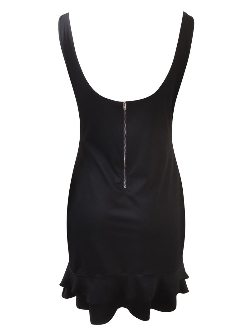 Glossy Solid Knit Deep V-Neck Tank Ruched Backless Mid-Calf Sheath Dress