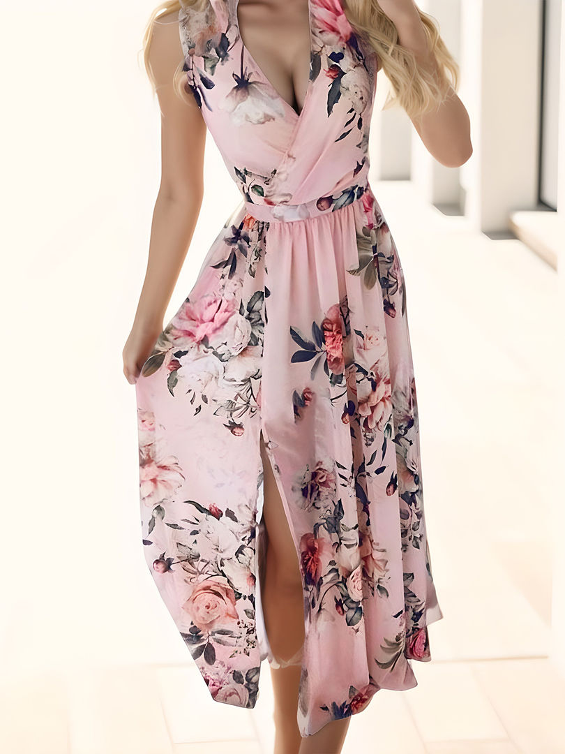 Imagine a dress that feels as good as a summer breeze and looks just as refreshing. This floral V-neck piece is designed for those days when comfort is key, but you still want a touch of feminine charm. With its easy pullover style and knee-length cut, it's ready for whatever your casual summer plans hold.
