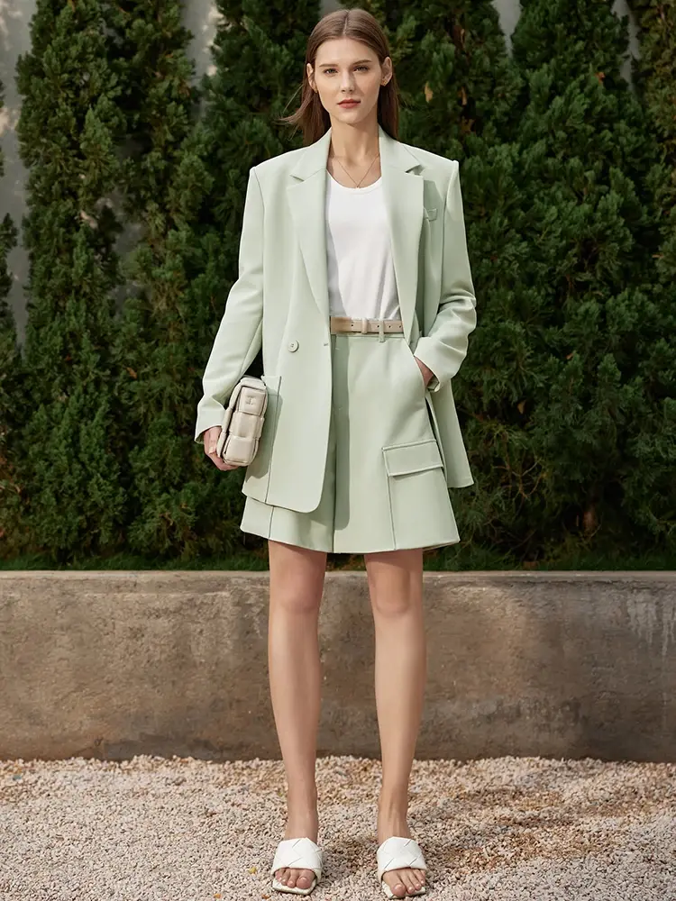 Women's Minimalist Blazer & Skirt Set - Office Wear, Spring Fashion