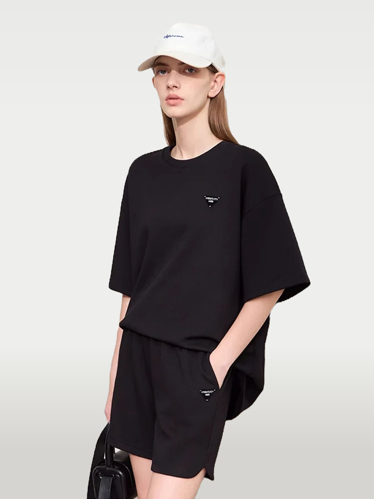 Women's Minimalist Summer T-Shirt - Loose Fit, Drop Sleeve, Cotton