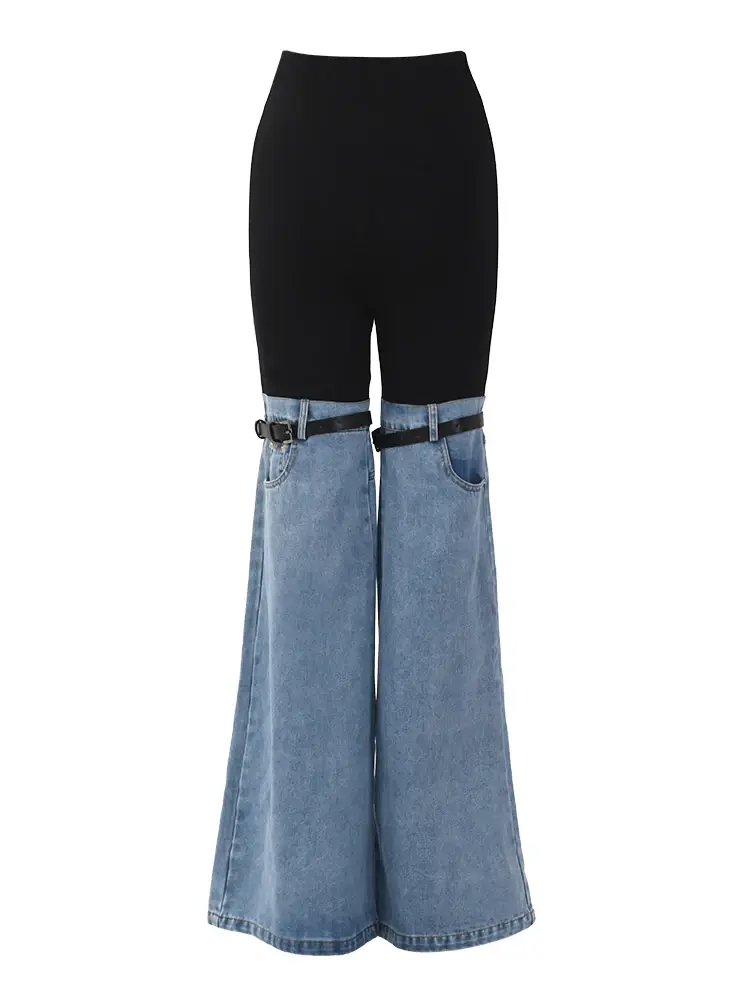 Inject an edgy touch into your wardrobe with light wash plaid, wide-leg jeans. These relaxed-fit pants feature a modern twist on classic denim with a comfortable, loose silhouette and statement fake zippers. Made from a breathable cotton-poly blend with a slight stretch, they're perfect for year-round wear.