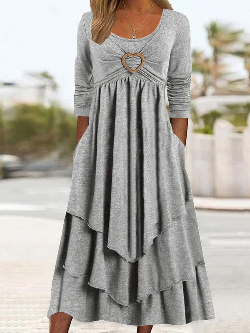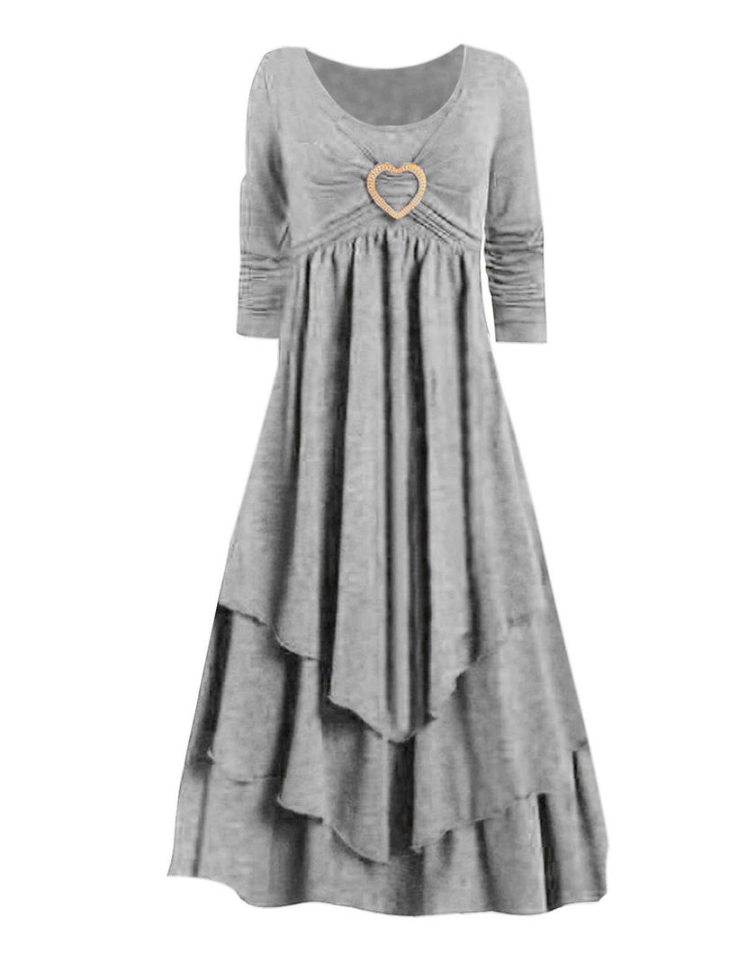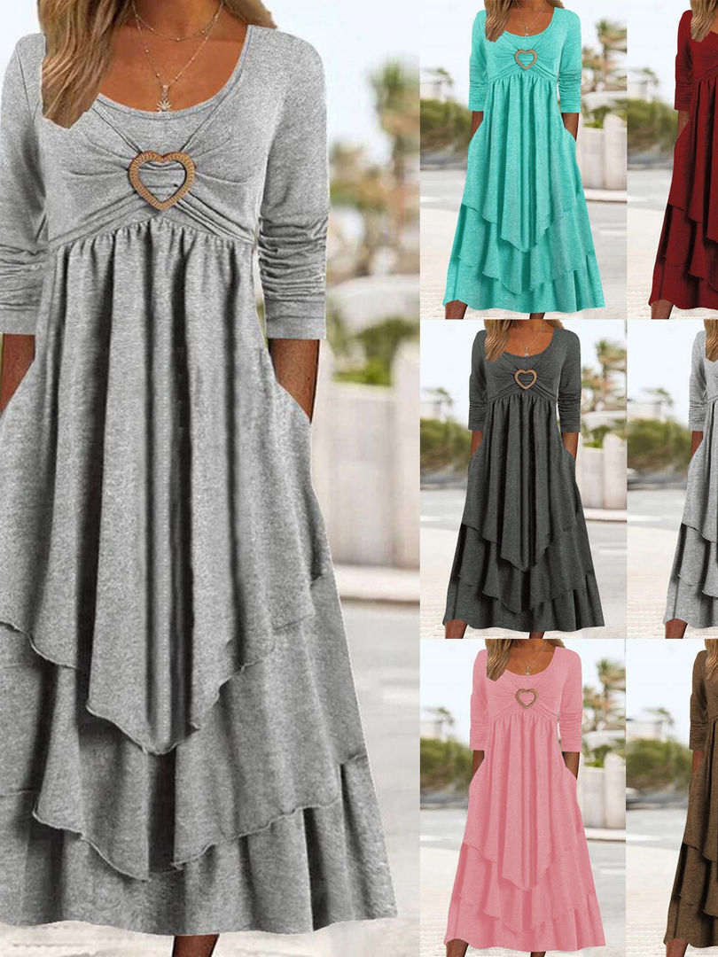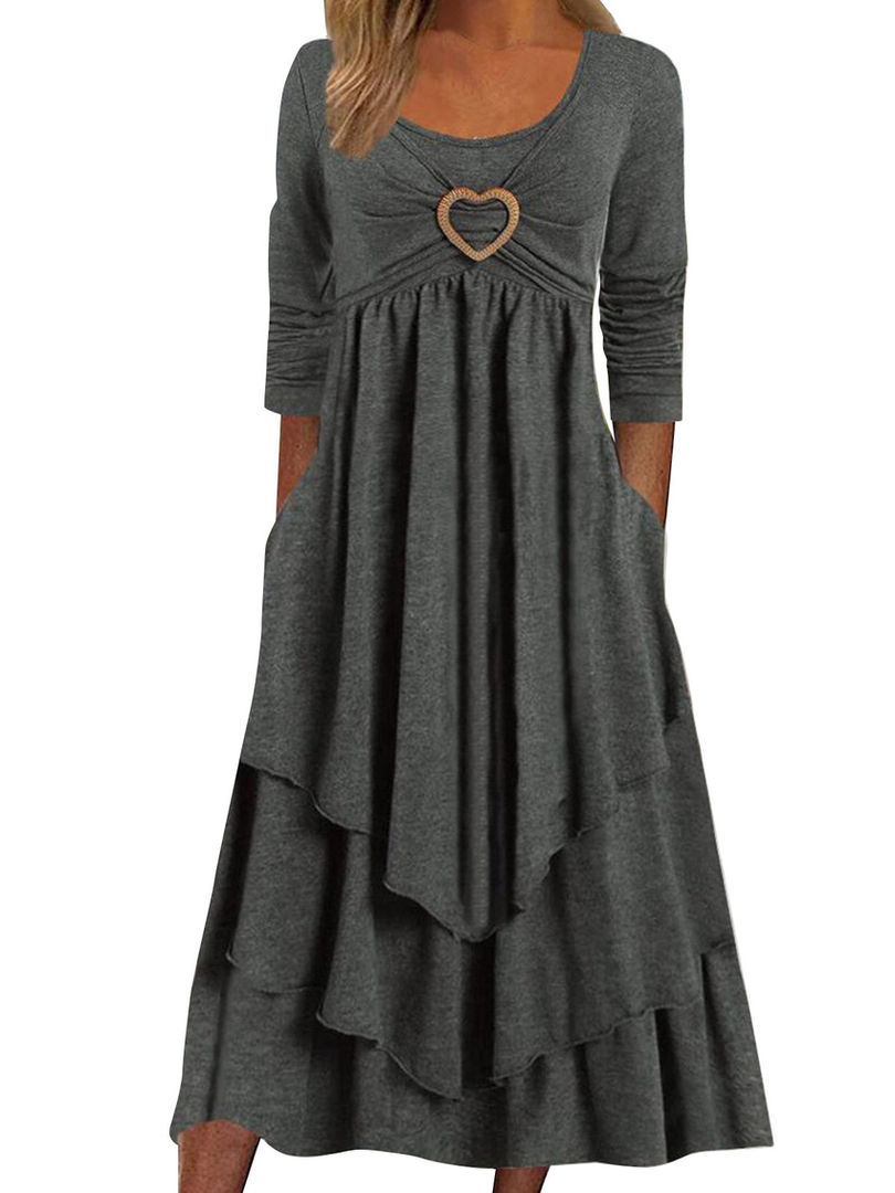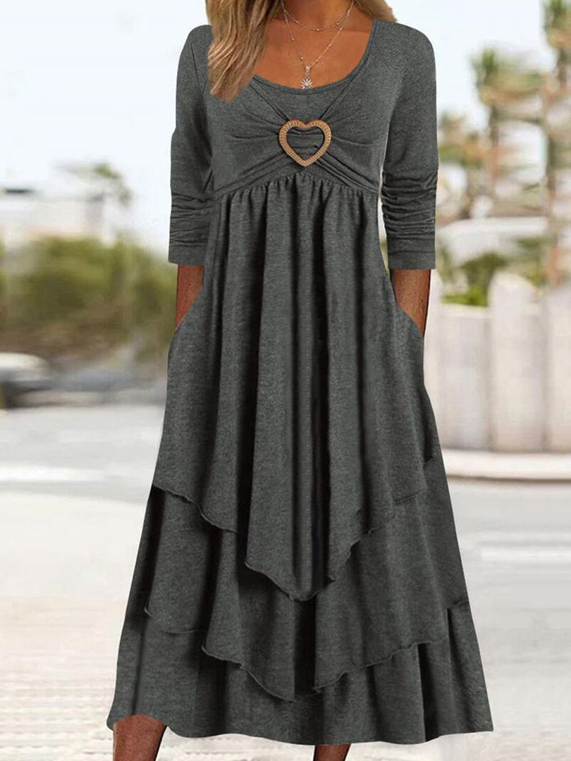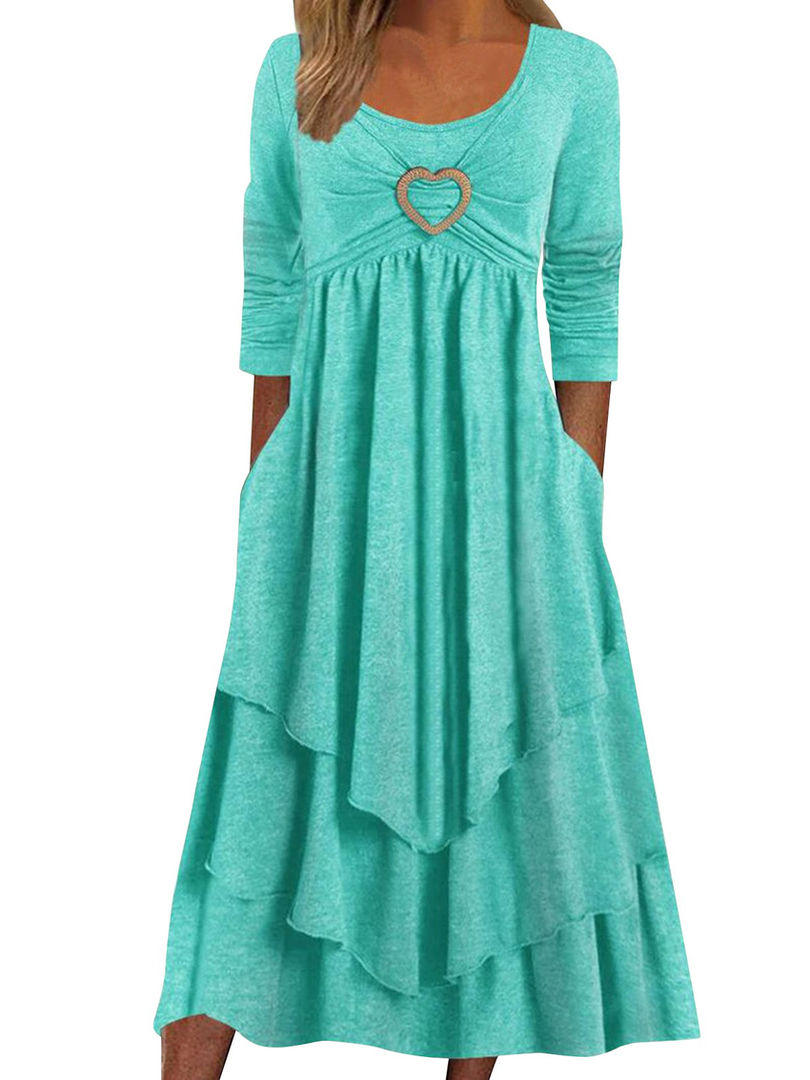 This knee-length A-line dress offers effortless style with its solid pattern and O-neck design. Crafted from high-stretch knit fabric, it provides comfort and a regular fit for all-day wear.